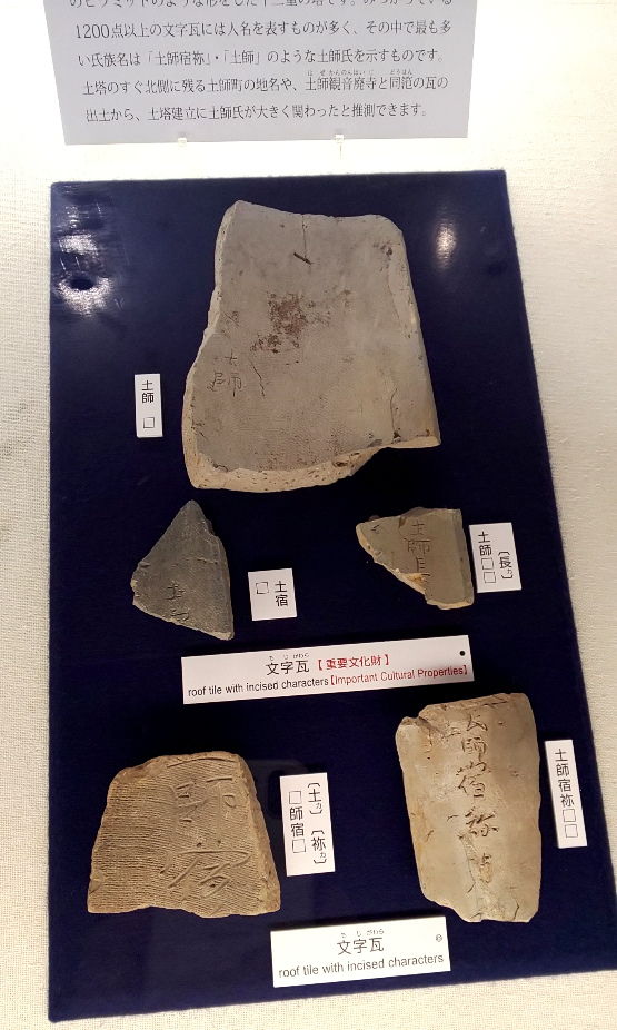 | 若井敏明 2019年9月29日 大野寺土塔の文字瓦 近つ飛鳥博物館に古市・百舌鳥古墳群と土師氏の展覧会に行きました。 土師氏の名前が記された土塔の文字瓦も展示されていました。 行基と土師氏との結びつきはこれまでも指摘されていますが、 大切な視点だと思います。 ただ展覧会最終日前日に行ったので、 会員の皆様がご覧になる機会がないのが残念です。
