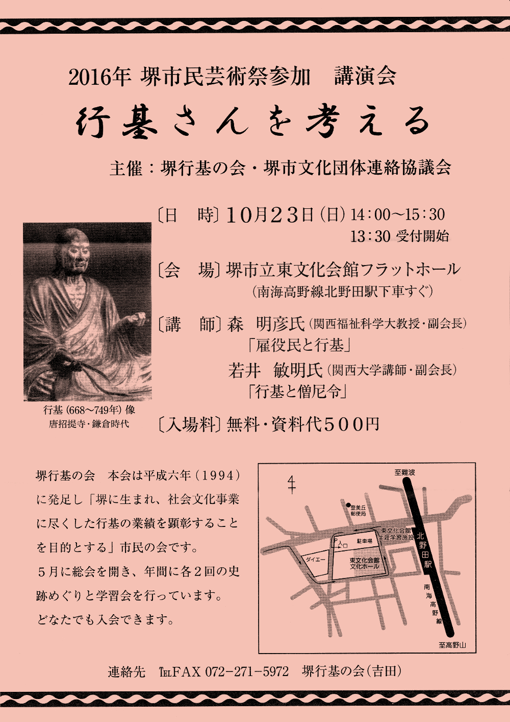 ・申込方法:「ゆうちょ銀行・00950-8-69265・堺行基の会」まで