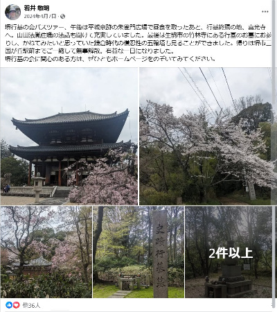 | 和田 2018年4月3日 若井先生がご自身のフェイスブックに投稿された「春の史跡巡り」記事です。 ![]()