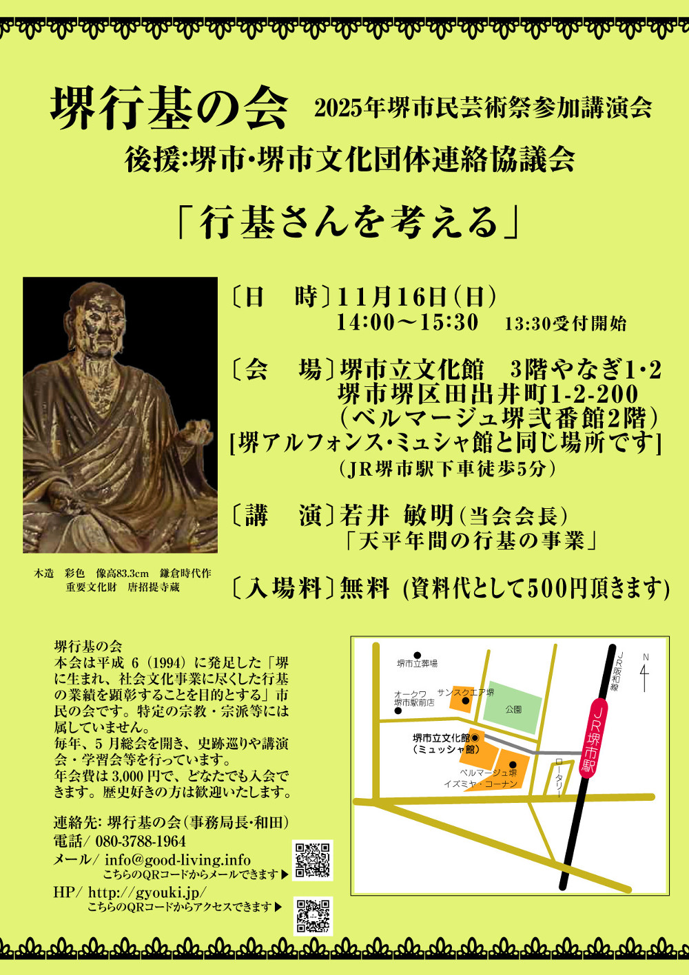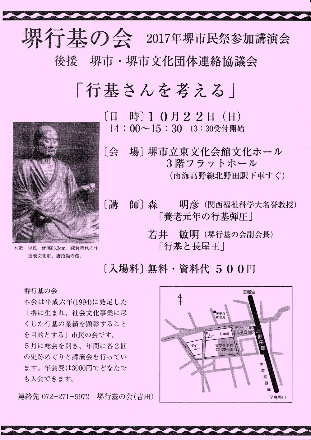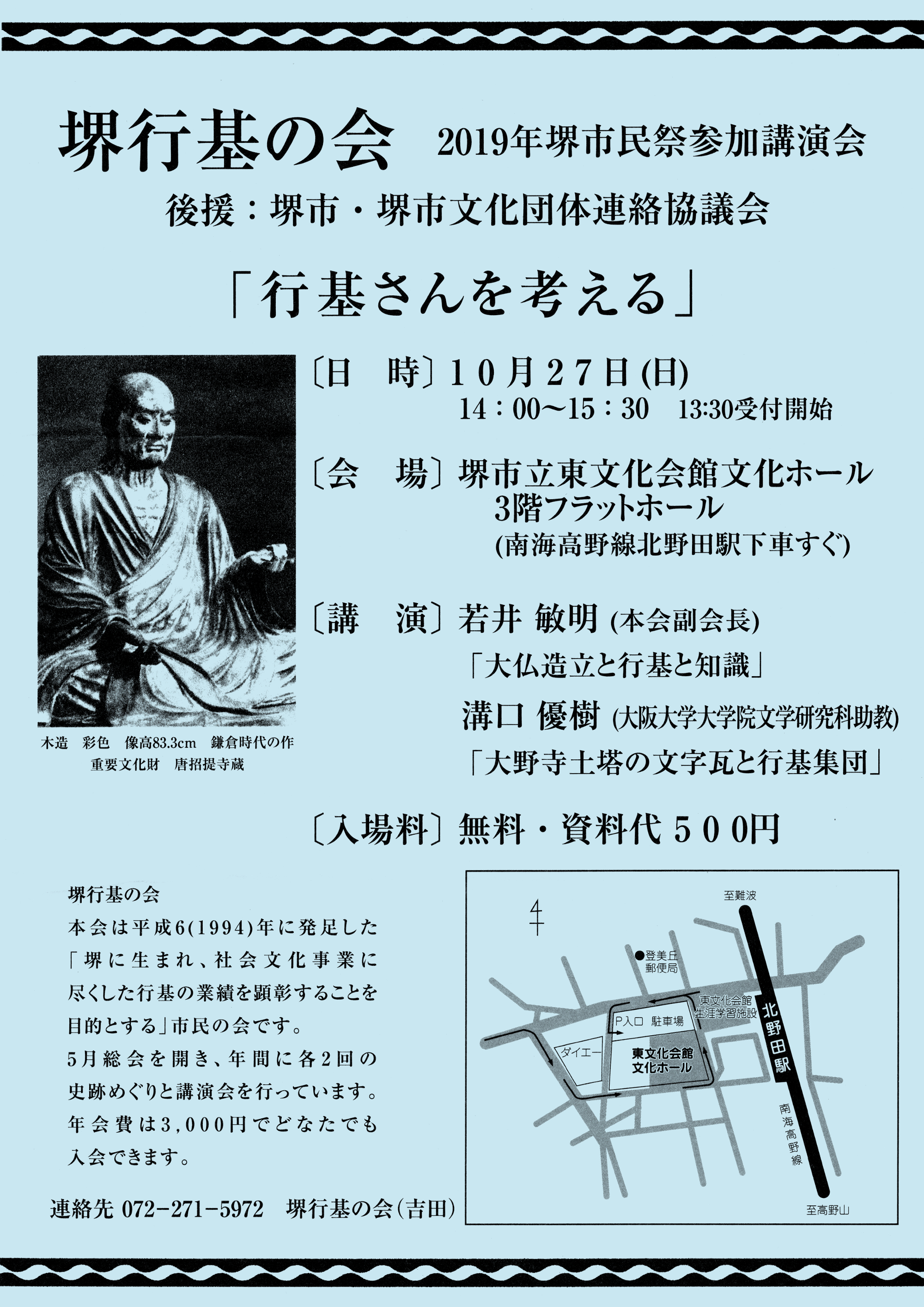 ・申込方法:「ゆうちょ銀行・00950-8-69265・堺行基の会」まで